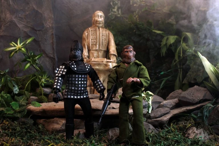 At a meeting of the ape council, General Ursus uses the recent raids by wild humans as a cover to invade the Forbidden Zone where few apes have ventured since the beginning of their society. Ursus thinks a tribe of humans lives there, due to his gorilla scouts failing to return from the zone. Ursus is successful and assembles a gorilla army, which marches into the Forbidden Zone accompanied by Dr Zaius. The group of intelligent mutants that dwell in the Forbidden Zone use their psychic powers to deter the apes, Ursus and his gorillas are frightened but Dr Zaius becomes enraged charging forward. Ursus and his soldiers then follow Zaius finding the entrance to the mutant city and leads the apes into the heart of the mutant world which houses a nuclear weapon. Ursus meets the mutant leader, who is killed and commands for the nuclear weapon to be pulled own. Zaius pleads with Ursus not to touch the missile, fearing it’s true intent. Ursus ignores him but is shot dead by Taylor and Brent as the humans try and prevent damage to the bomb.