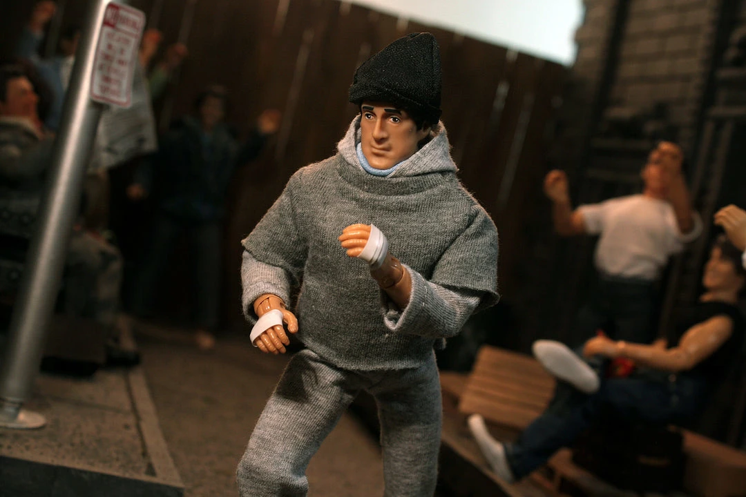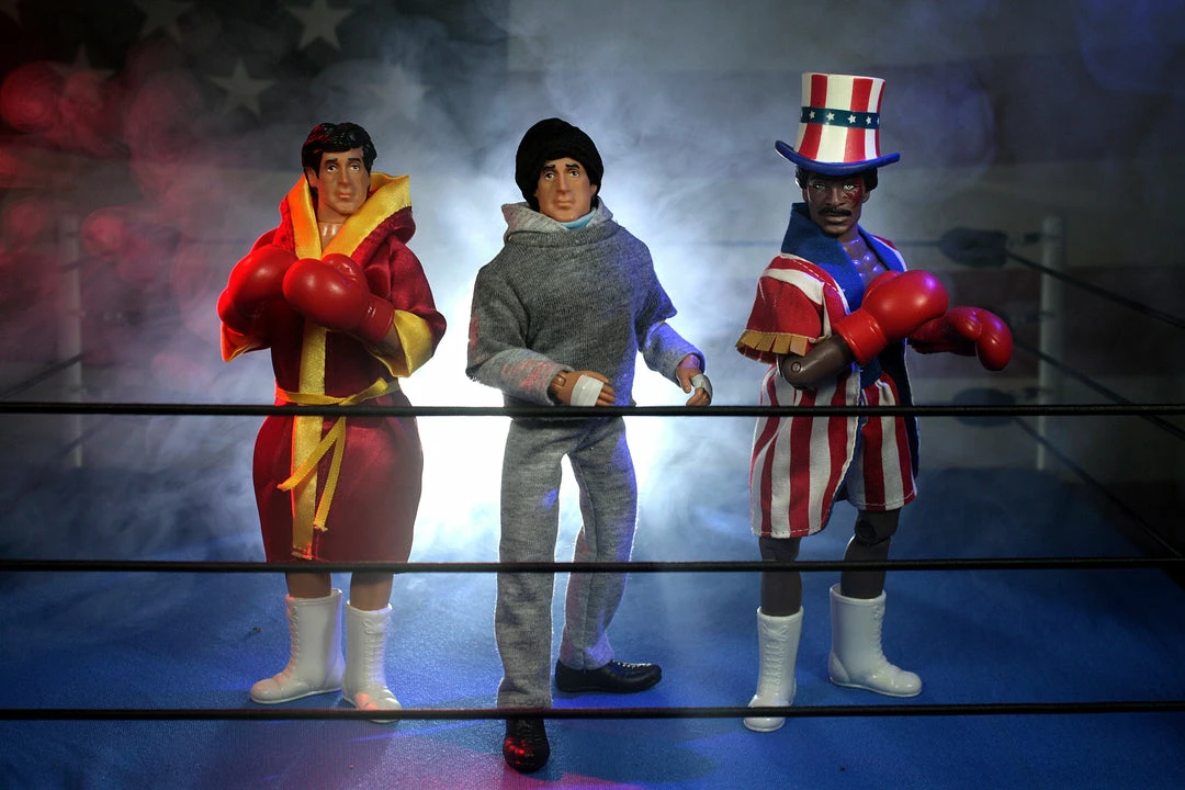 It’s the sports drama that launched a thousand sequels: Rocky, the story of down-on-his-luck Philadelphia southpaw Rocky Balboa’s quest to beat heavyweight boxing champion Apollo Creed in a title bout. To prepare, Rocky engages in an endless series of grueling physical challenges: he runs through the streets; he exercises while holding bricks; he punches meat; he boxes; he does push-ups; most memorably, he sprints up the steps of the Philadelphia Museum of Art. Mego pays homage to that iconic movie scene with their 8″ Rocky Balboa figure in his training sweatsuit exclusively available at ZLC Collectibles.
