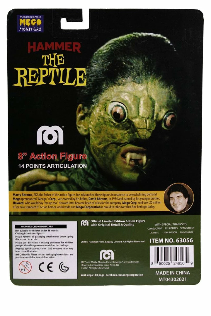 Mego is thrilled to present The World’s Greatest Mego Monsters The Reptile 8” action figure – officially licensed from Hammer Horror! The Reptile slithers her way into the Megoverse for the first time ever in the Classic Mego style!