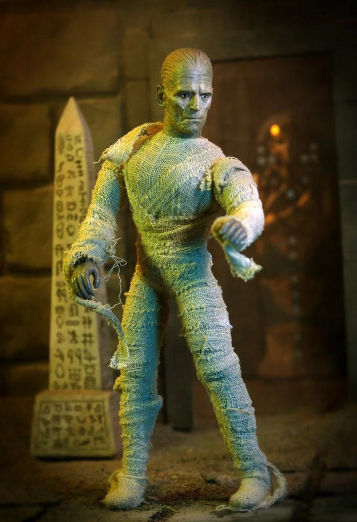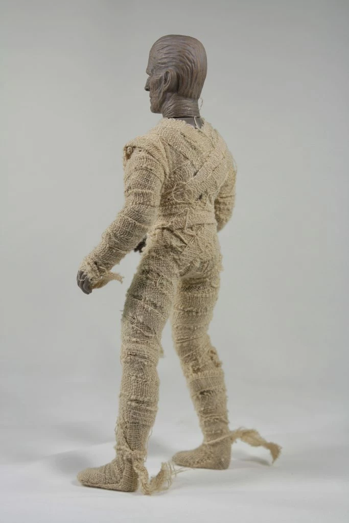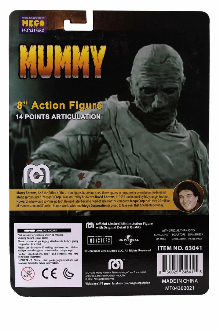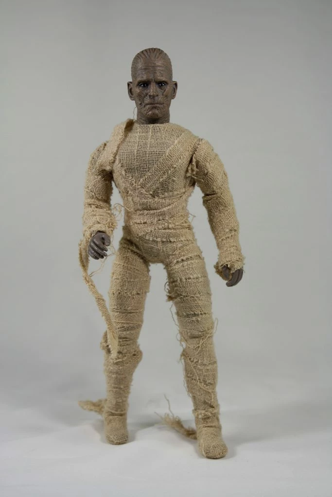 Traveling through the sands of the Megoverse The Mummy has returned with the new 8” classically styled Mego action figure! The Mummy is outfitted with screen accurate details and sculpting as seen in the 1932 film. Do you dare read the Scroll of Thoth aloud??