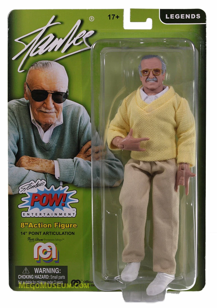 Stan Lee co-created some of the most iconic superhero characters in the world. He was a tireless advocate for the comic book industry and became a true icon of pop culture. Mego is thrilled to honor this legendary figure by introducing to the collector’s community, an 8-inch fully articulated action figure with web hands.Â