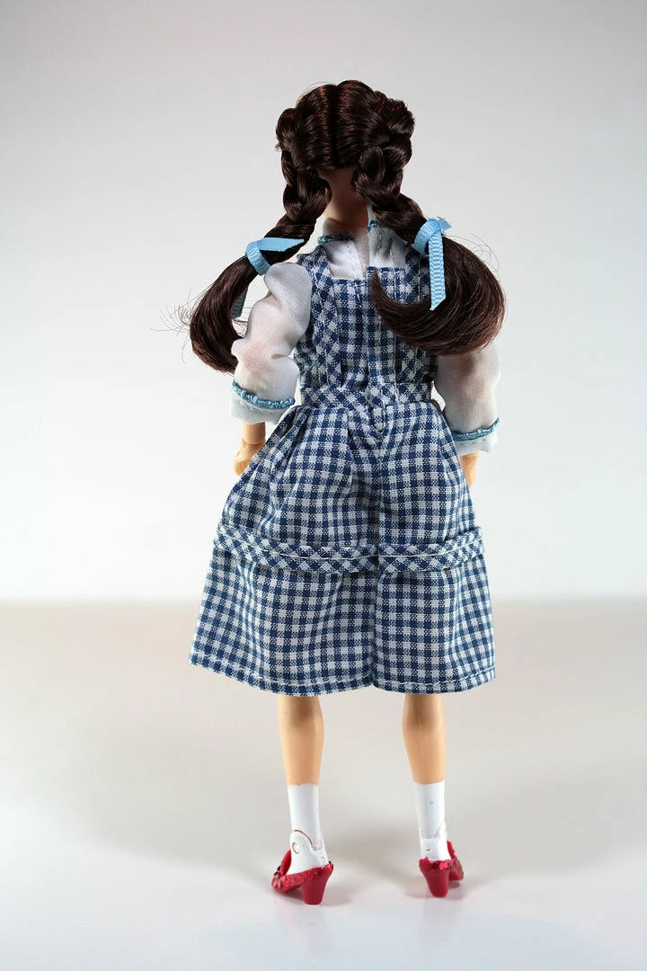 Dorothy lands in the magical place known as Oz after a tornado spirits her from her home in Kansas. In her search for a way to return home, Dorothy befriends others looking to meet the reclusive Wizard to help them with their troubles. This Mego is wearing her iconic ruby slippers, plaid dress, styled pigtails, and, of course, carrying a basket with Toto.