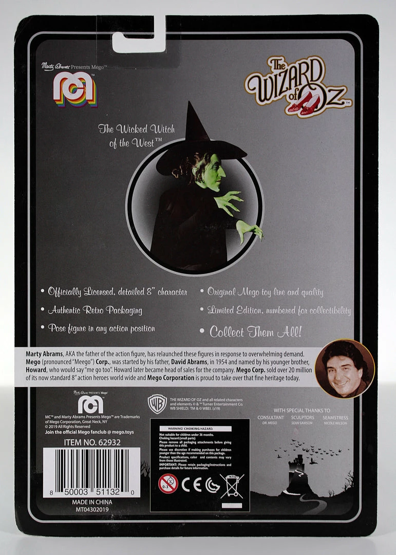 The Wicked Witch of the West is terrorizing the Land of Oz looking to steal Dorothy’s ruby slippers so she can use them to conquer the Wizard for control of Oz. Beware of the Wicked Witch or she will “get you, my pretty, and your little dog too! ” Add the witch to your Mego collection with her broom and hat.