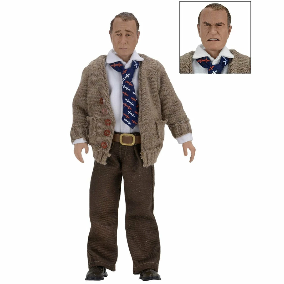 Ralphie’s dad, lovingly referred to as the “Old Man,” stands 8” tall, has fabric clothing, and is fully articulated. The figure comes with plenty of accessories for extra holiday fun: two interchangeable heads, Leg Lamp (it’s a Major Award), and more!