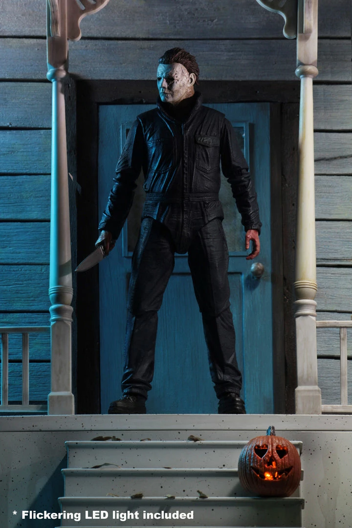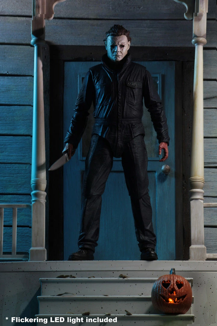 Based on his appearance in the thrilling new Halloween movie, this all new Michael stands over 7” tall and has received the Ultimate treatment, with over 25 points of articulation and tons of accessories. The Ultimate Michael Myers figure comes with 2 heads, knife, hammer, jack o’ lantern, interchangeable hands and more.
